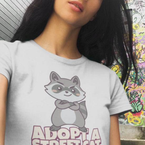 Unleash your inner animal lover with our hilarious "Adopt a Street Cat" T-shirt! This playful design features a cheeky raccoon ready to charm its way into your heart. Made from soft, high-quality fabric, this T-shirt is perfect for casual outings, lounging at home, or making a statement at your local animal shelter event. With its witty slogan, it's a great conversation starter and a fun way to promote pet adoption. Available in various sizes and colors, this T-shirt is the ideal gift for cat enthusiasts, raccoon fans, and anyone with a sense of humor. Wear it proudly and spread the message of love and kindness towards our furry friends!