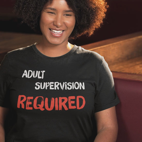 Elevate the humor in your wardrobe with our cheeky "Adult Supervision Required" T-shirt. Perfect for those who enjoy a touch of wit and a dash of sarcasm, this shirt is designed for adults who don't take life too seriously. Whether you're out with friends, at a casual gathering, or just lounging around, this shirt is sure to spark laughs and start conversations. Made from soft, high-quality cotton, it ensures comfort while keeping your look effortlessly fun. Let your sense of humor shine through and make a statement with this playful apparel choice.