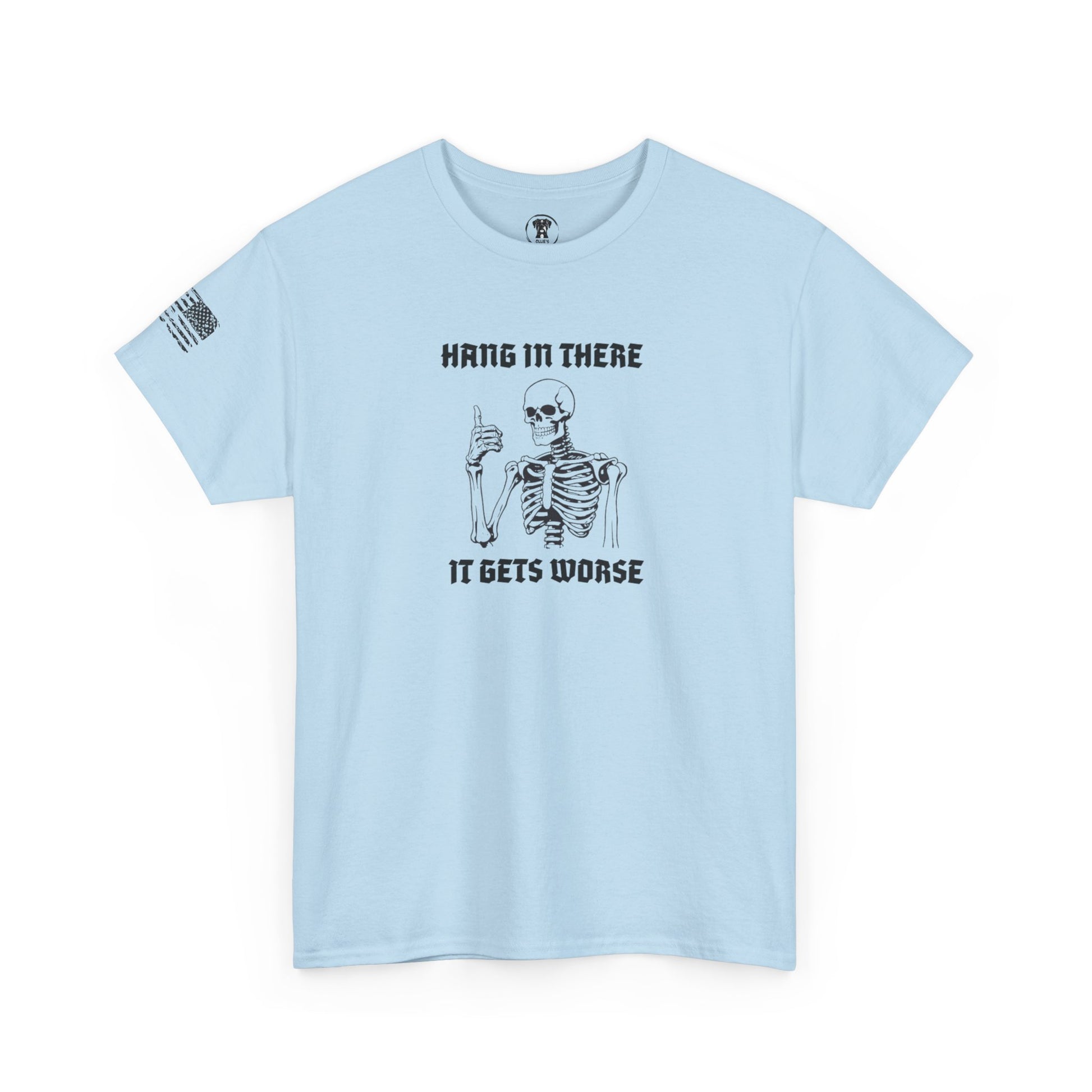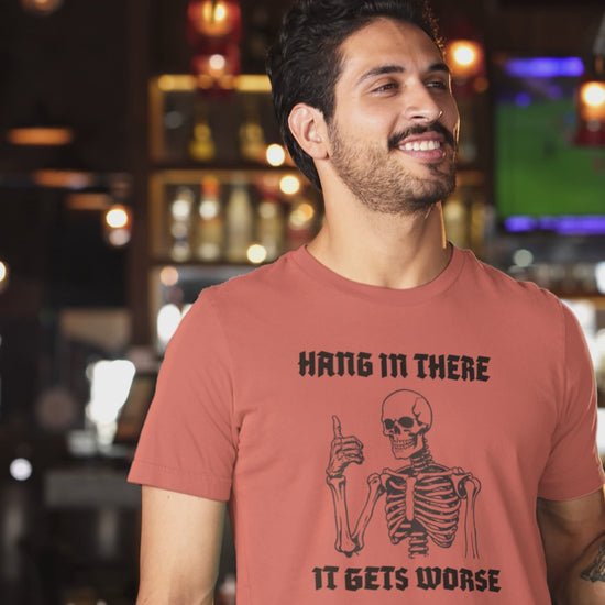 Embrace the chaos of life with our cheeky "Hang in There, It Gets Worse" t-shirt! Designed for those who appreciate a good dose of humor even in the toughest times, this shirt is perfect for sparking conversations and bringing smiles.