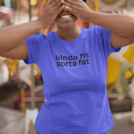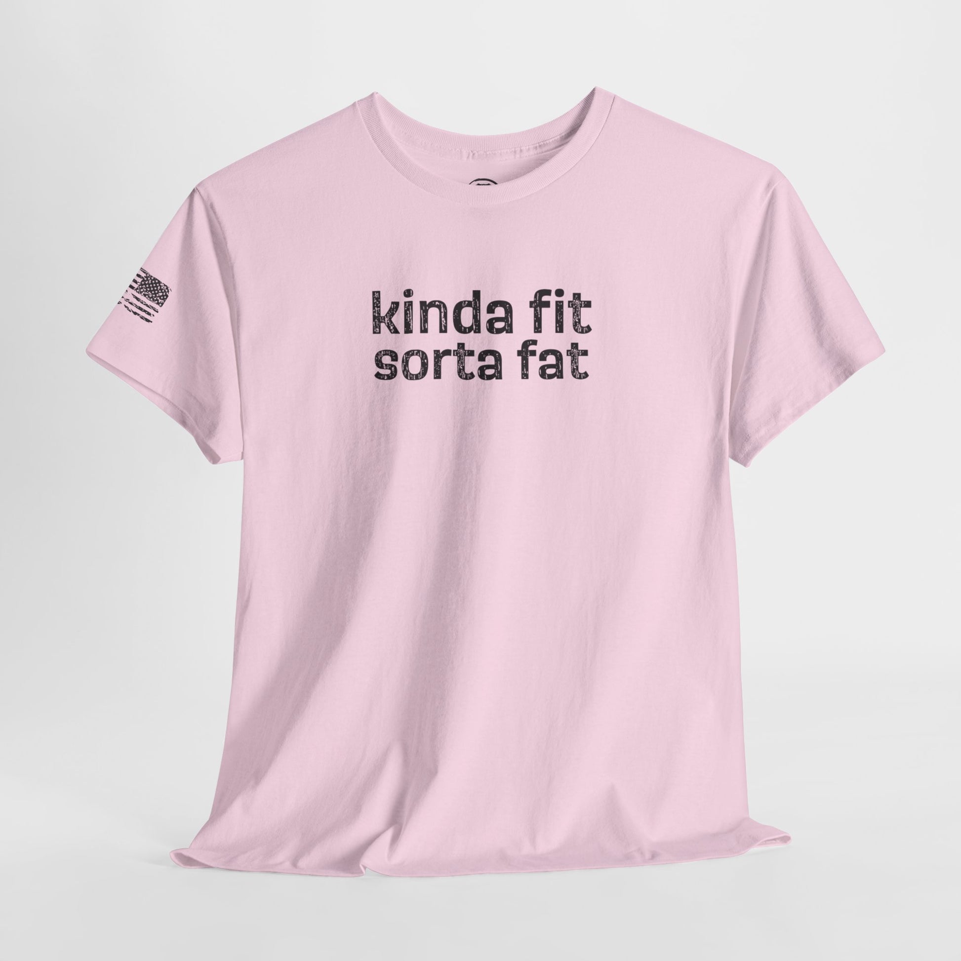 This humorous T-Shirt is perfect for those who want to add a touch of fun to their wardrobe. This 'Kinda Fit, Sorta Fat' design adds a playful vibe to the shirt, making it a great conversation starter. Suitable for adults looking for a comfortable and stylish tee to wear on casual occasions.