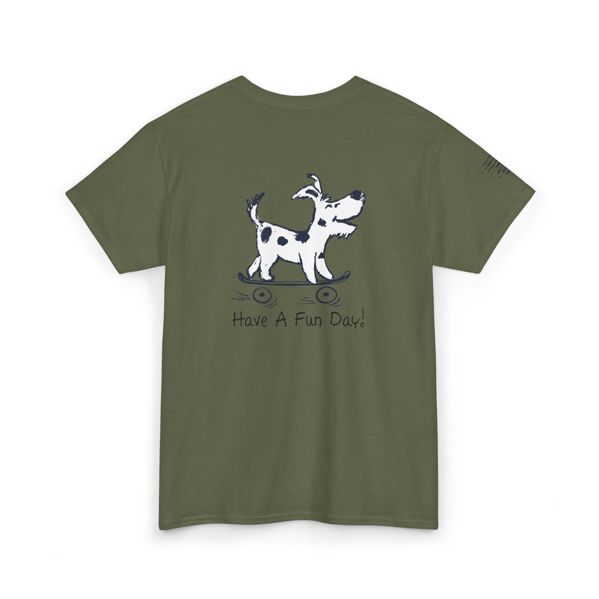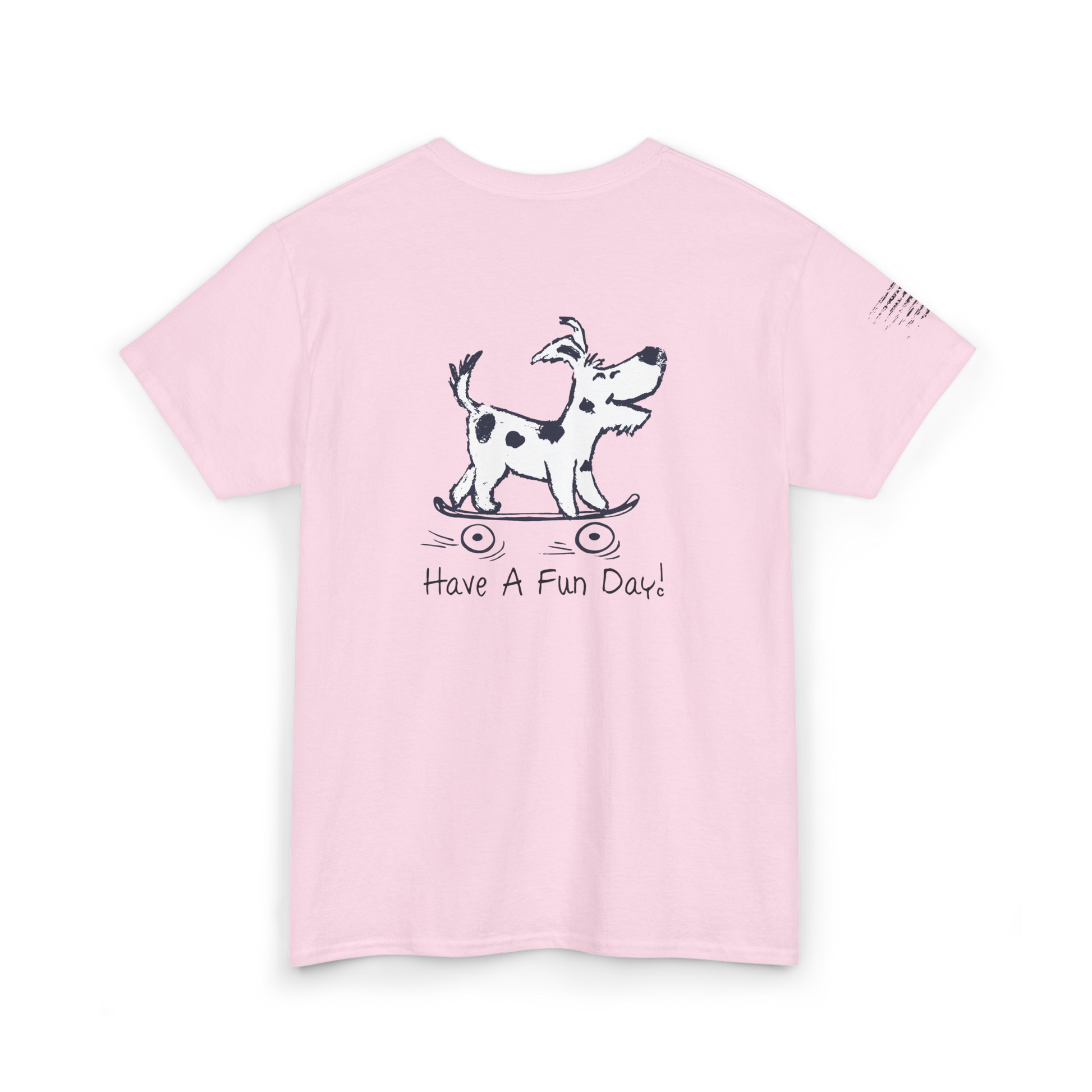 This 'Have A Fun Day' dog t-shirt is perfect for dog lovers looking to add a playful touch to their wardrobe. The relaxed fit and comfortable fabric make it ideal for casual outings and hanging out with furry friends. This tee is great for celebrating National Dog Day or just adding a cheerful vibe to any day.