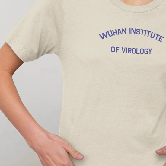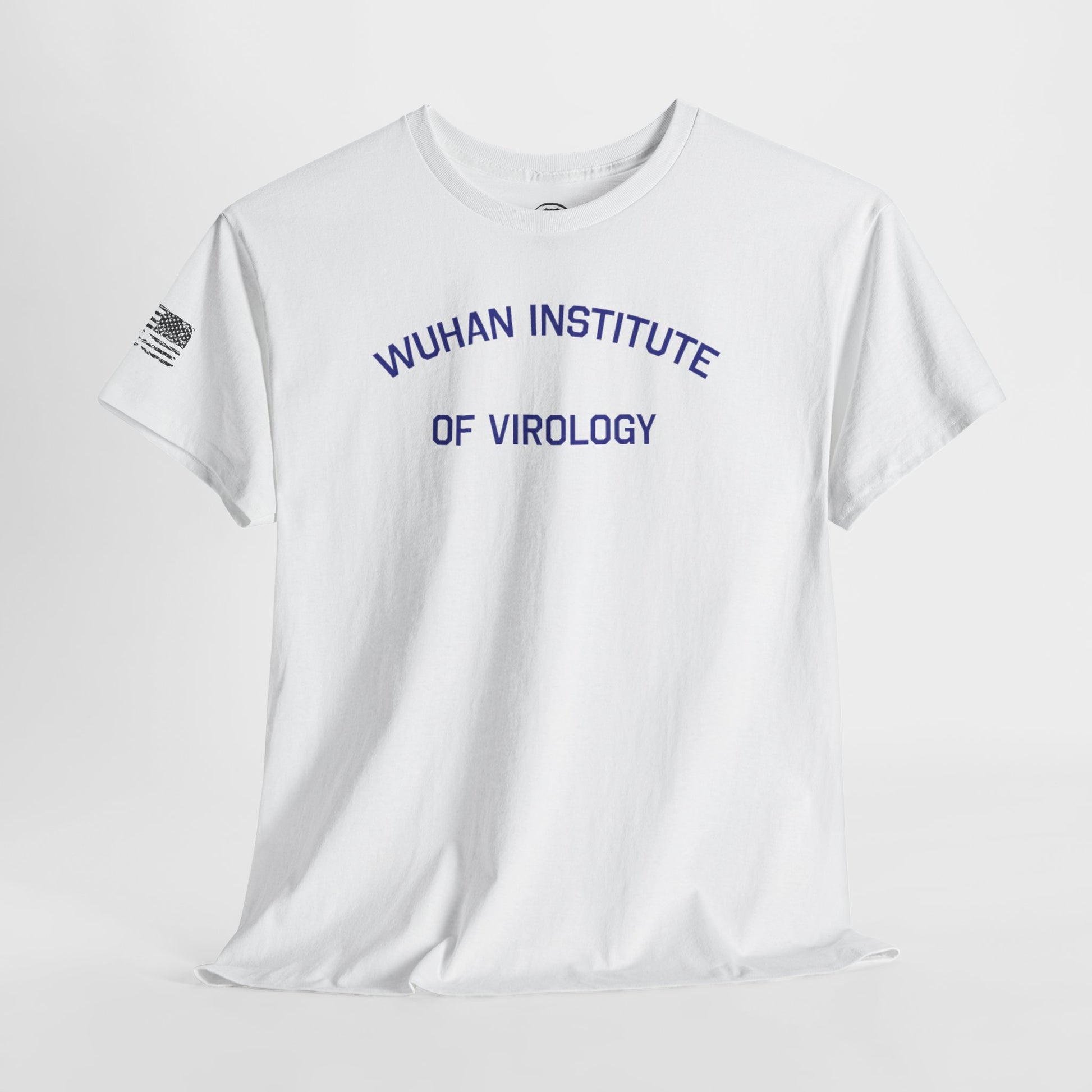 Ollie's 'Wuhan Institute of Virology" design, perfect for a casual look with a touch of humor. Suitable for adults looking to make a statement or add a bit of dark humor to their wardrobe. Great for wearing on casual days, parties, or events related to science, medical field, or current events.