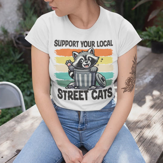This Support Your Local Street Cats Tee gives off a casual and laid-back vibe, perfect for cat lovers and animal enthusiasts. It is a great addition to a relaxed weekend outfit or as a statement piece for casual outings. Ideal for animal shelter volunteers, cat café visitors, and feline lovers celebrating International Cat Day.