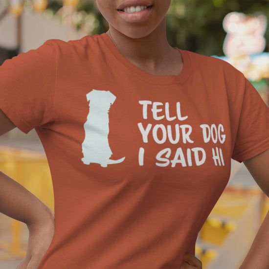 Embrace your love for all things canine with our playful and witty "Tell Your Dog I Said Hi" T-Shirt. This tee is perfect for dog lovers who express their friendly, fun-loving nature with a touch of humor. It's a great conversation starter and an excellent way to showcase your affection for furry friends.